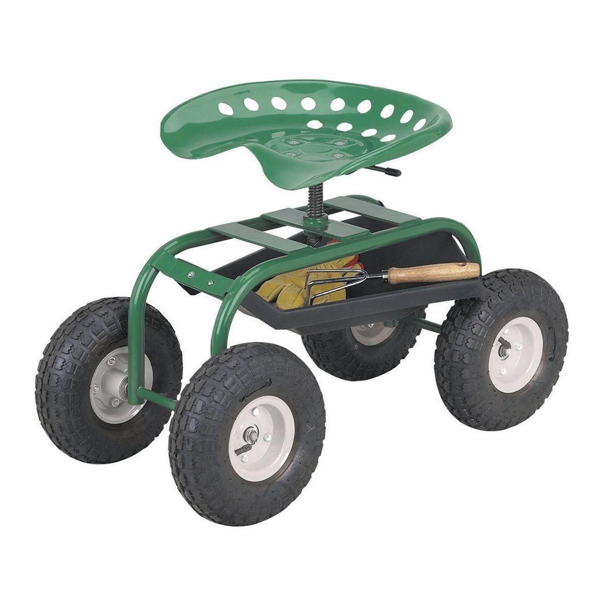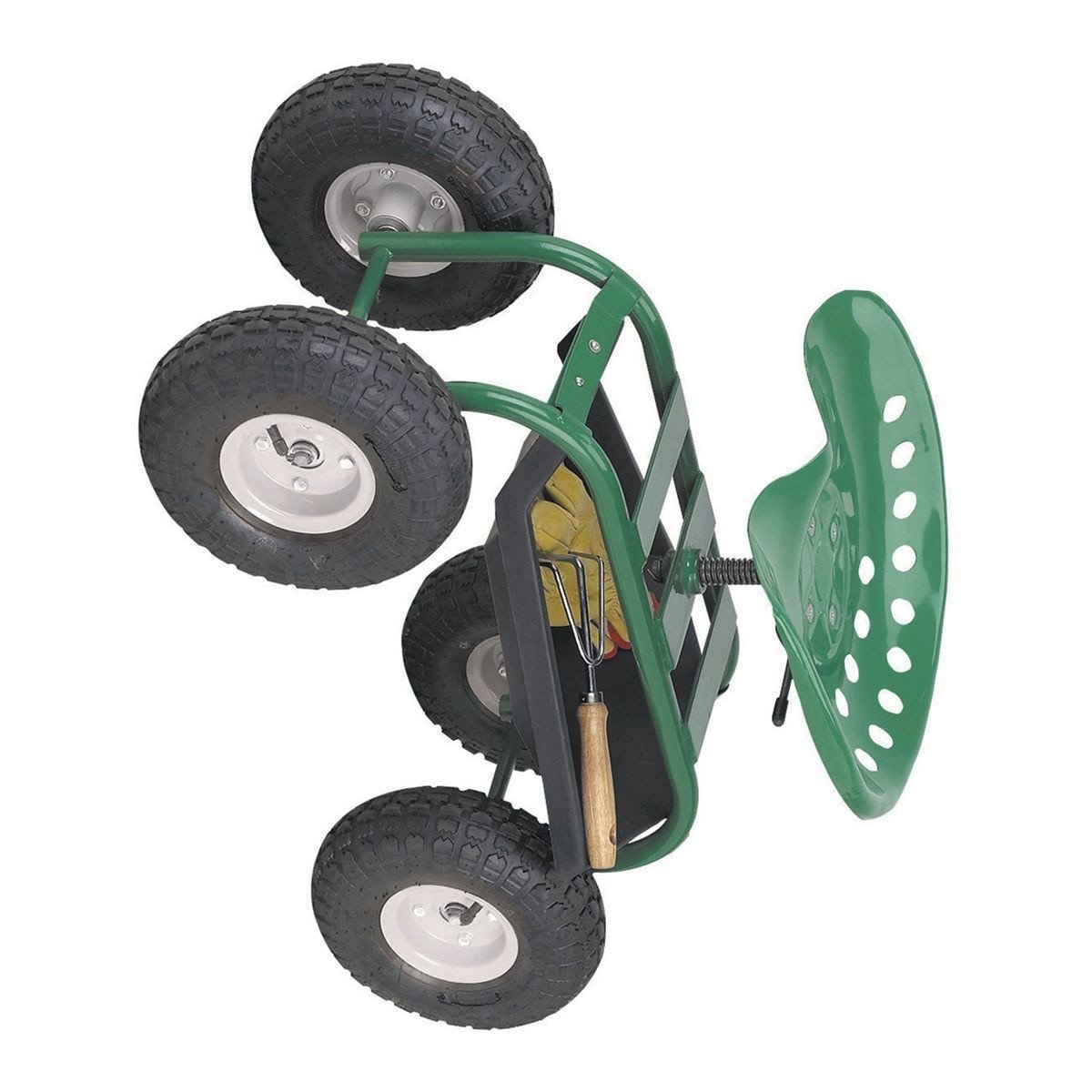 Evite agacharse con este cómodo asiento de trabajo con ruedas. La práctica bandeja de polipropileno adjunta mantiene sus suministros a mano mientras trabaja. Ya sea que esté en el jardín, arreglando su automóvil etc , trabajará más cómodamente sentado en este asiento de trabajo giratorio tipo tractor.