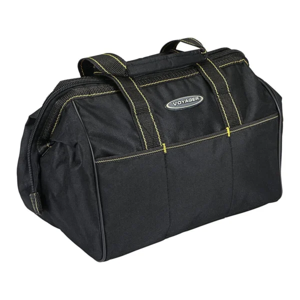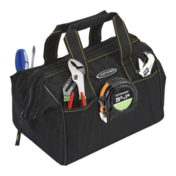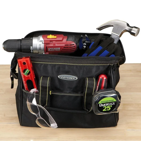 Bolsa de herramientas resistente con boca ancha que permite un acceso rápido y fácil. Diseñada con múltiples compartimentos internos y externos para mantener todo organizado y seguro. Perfecta para transportar tus herramientas del taller al lugar de trabajo.