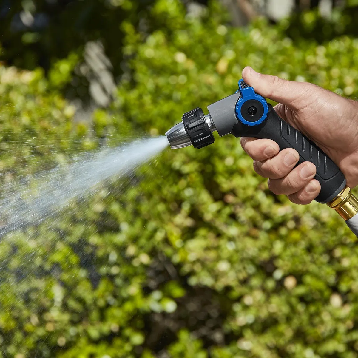La boquilla para manguera NIAGARA con control de pulgar ofrece un manejo preciso y cómodo con una sola mano. Permite cambiar fácilmente de un rocío ligero a un chorro potente, ideal para riego, limpieza o remojo. Su cuerpo metálico de alta resistencia y mango ergonómico hacen que cada uso sea firme, duradero y confortable.