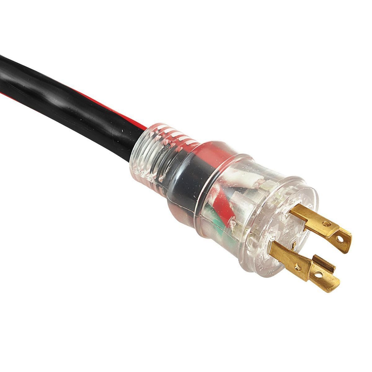 Este cable de extensión es fuerte y seguro, diseñado para conectar generadores. Su enchufe de bloqueo evita que se desconecte mientras trabajas, por lo que es ideal para profesionales. Además, su cubierta es resistente al aceite, lo que lo hace perfecto para usar tanto en interiores como en exteriores. Funciona con herramientas y electrodomésticos que tienen enchufes de bloqueo NEMA L14-30.