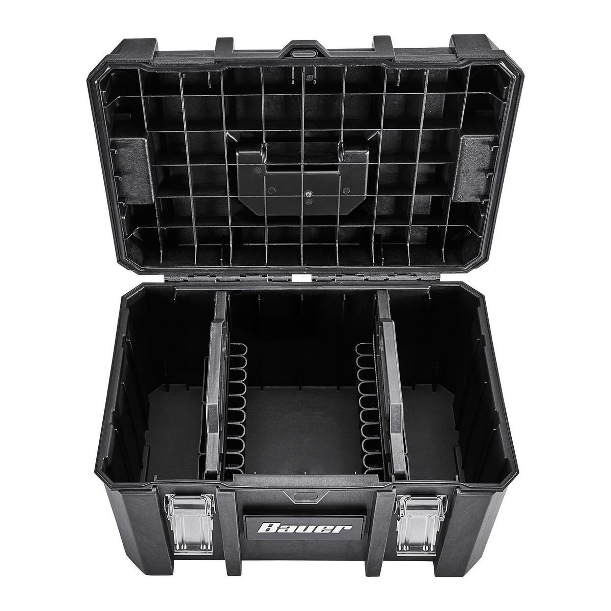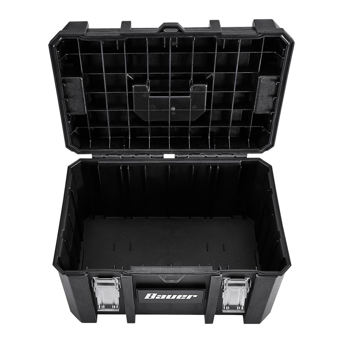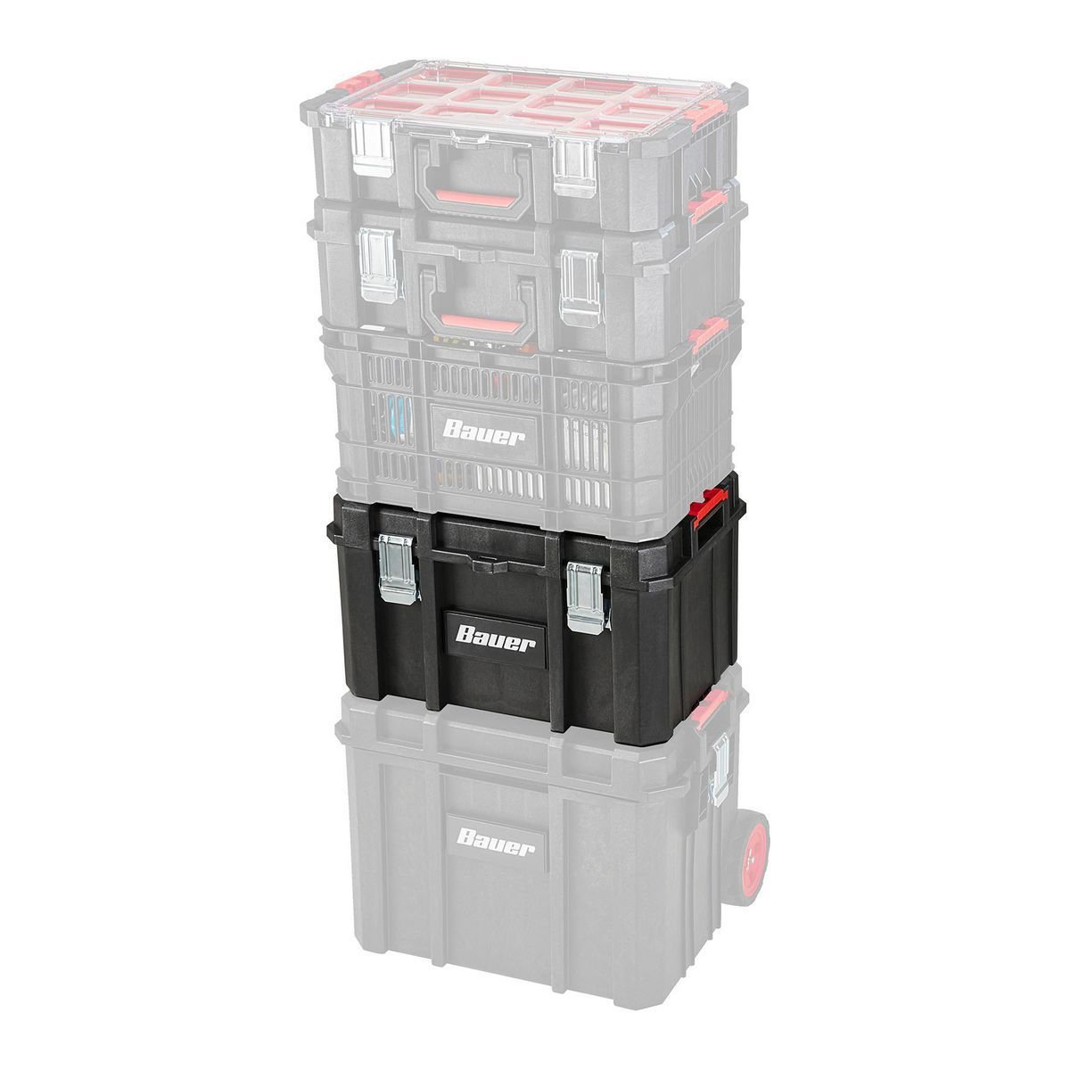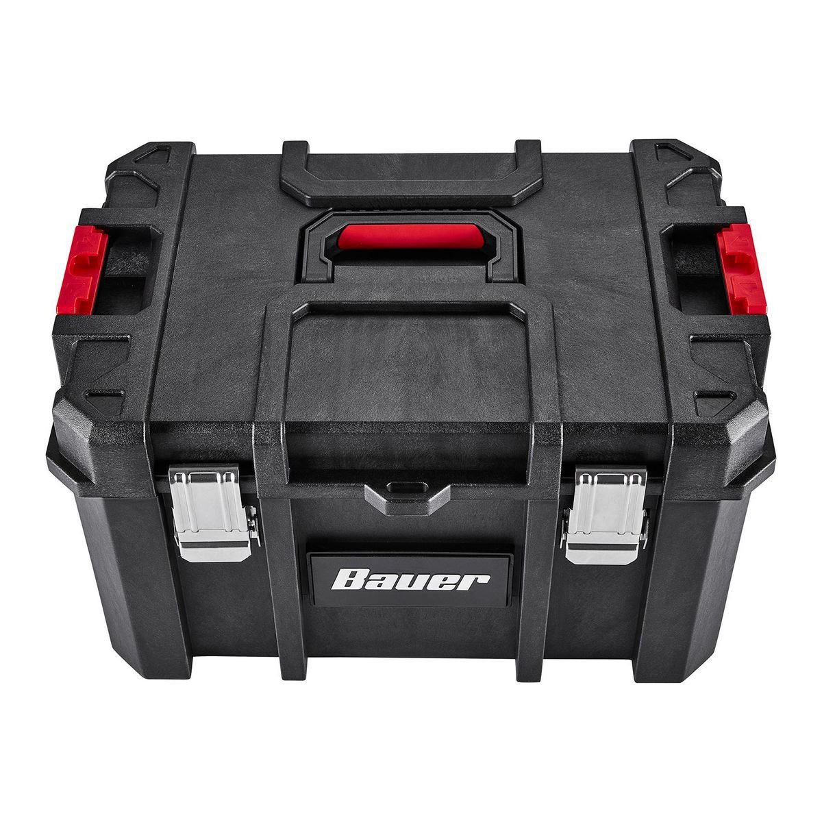 La caja de herramientas modular grande BAUER™ es ideal para organizar herramientas. Fabricada con resina de alto impacto, esta caja cuenta con tarjetas de herramientas removibles para organizar alicates, destornilladores y más. Los fuertes pestillos de metal mantienen las herramientas seguras durante el transporte. Con una capacidad de peso de 50 lb, esta caja es completamente compatible con el Sistema Modular de Almacenaje BAUER™. El organizador tiene una clasificación IP65 para resistencia al polvo y al agua. Personaliza tu almacenamiento para un acceso rápido a las herramientas esenciales.
