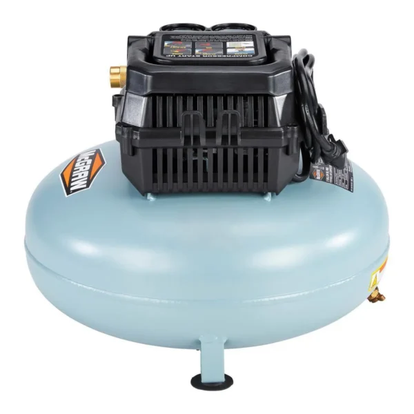 El compresor de aire tipo pancake MCGRAW® de 3 galones, 1/3 HP y 110 PSI cuenta con un diseño de perfil bajo para máxima estabilidad. Su tamaño compacto y peso ligero lo hacen ideal para trabajos de clavado/grapado en obra, inflado y limpieza. El compresor tiene una bomba sin aceite que no requiere mantenimiento.