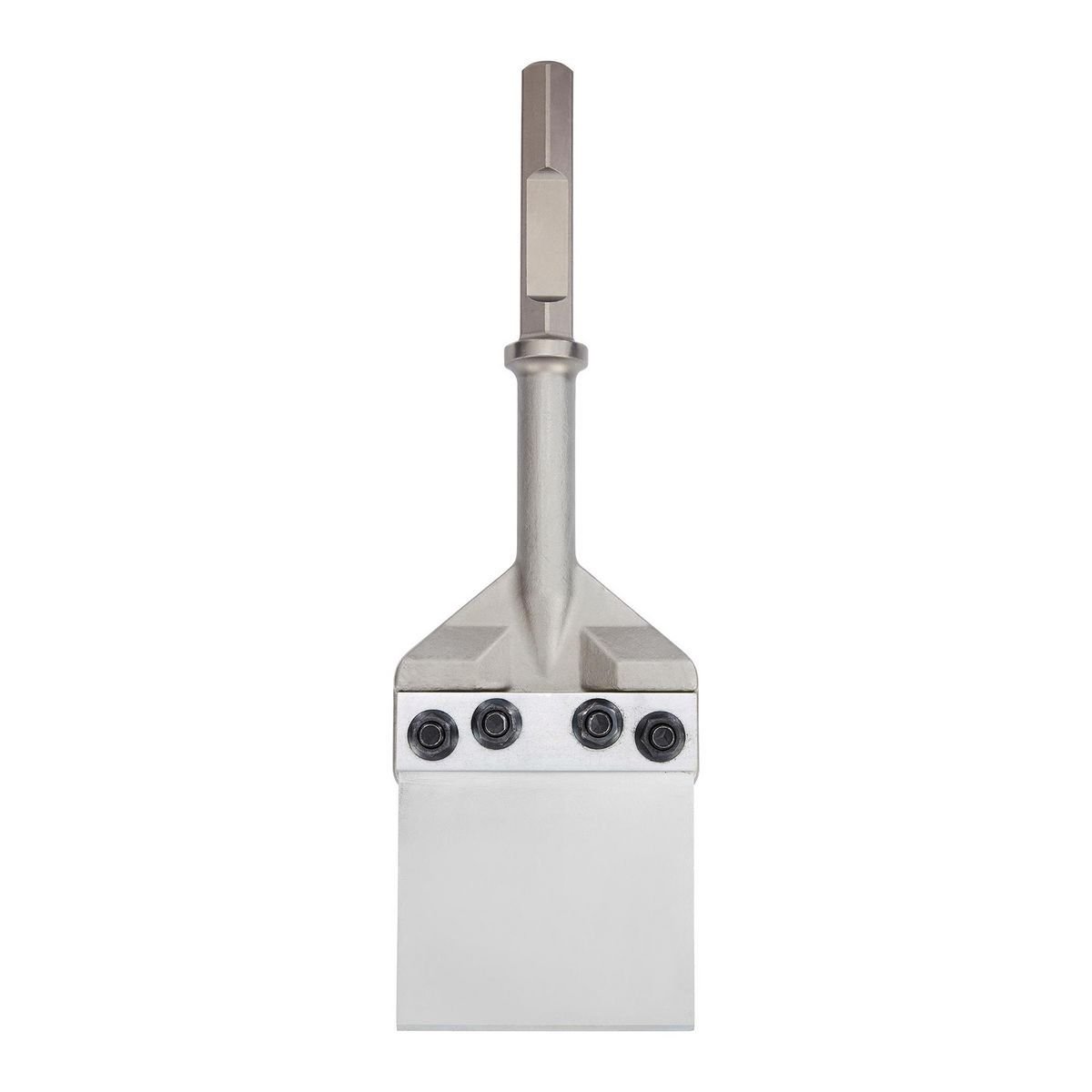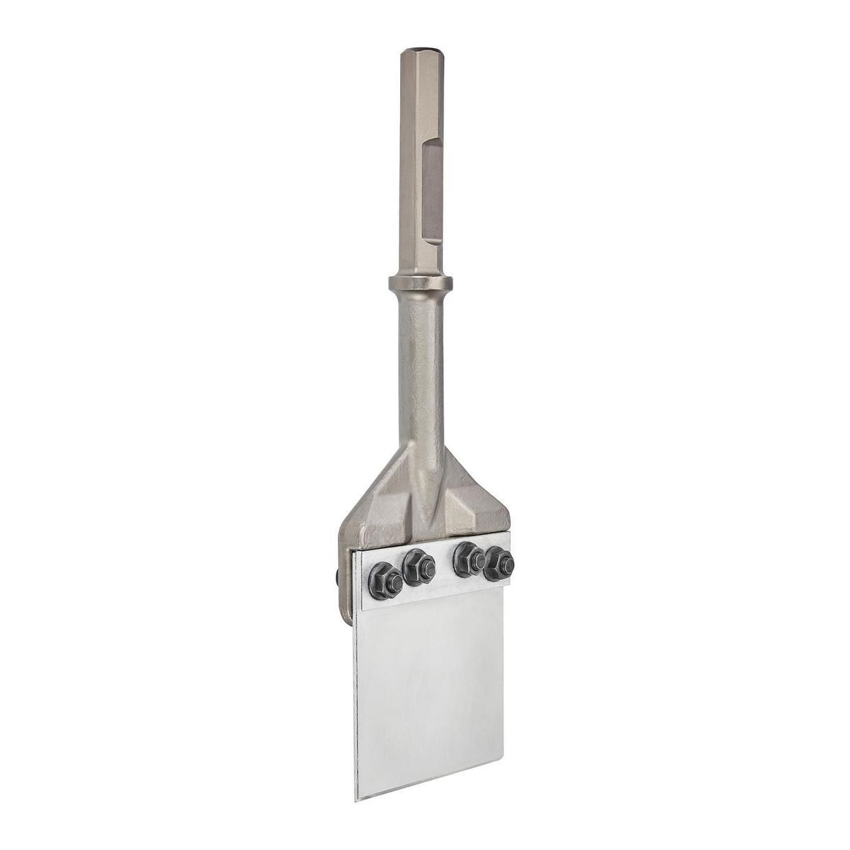 Cuenta con un ancho de 6 pulgadas, ideal para trabajos de nivelación, raspado, recubrimientos y pisos. Diseñada para ofrecer durabilidad y rendimiento en aplicaciones exigentes, esta herramienta es compatible con martillos demoledores con mandril hexagonal de 1-1/8 pulgadas.