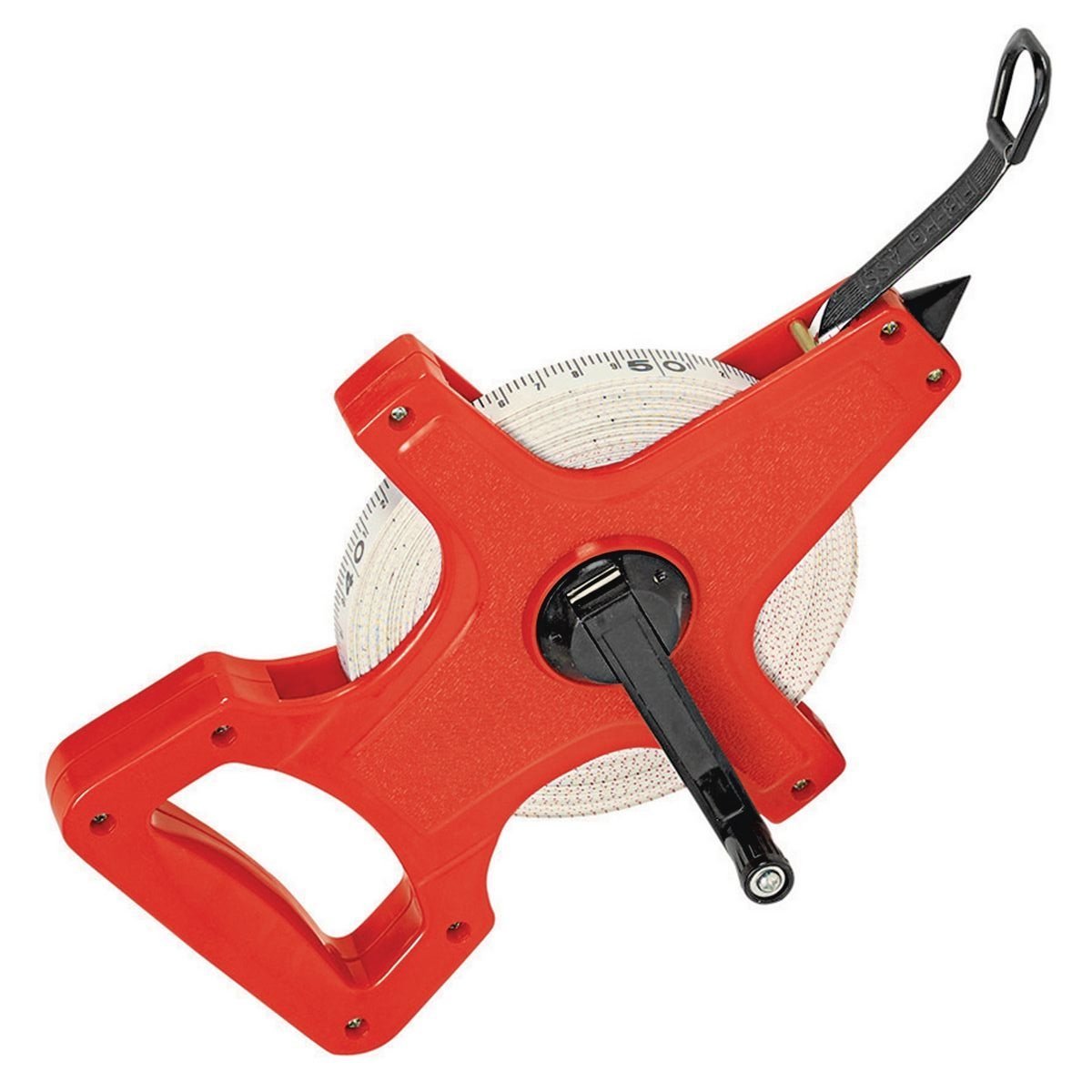 Esta cinta métrica de carrete abierto de calidad para contratistas es ideal para trabajos topográficos, energía, trabajos de servicios públicos y medición general de distancias.