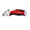 El mecanismo ergonómico de retracción de la hoja con botón pulsador bloquea de forma segura la hoja en su lugar
