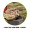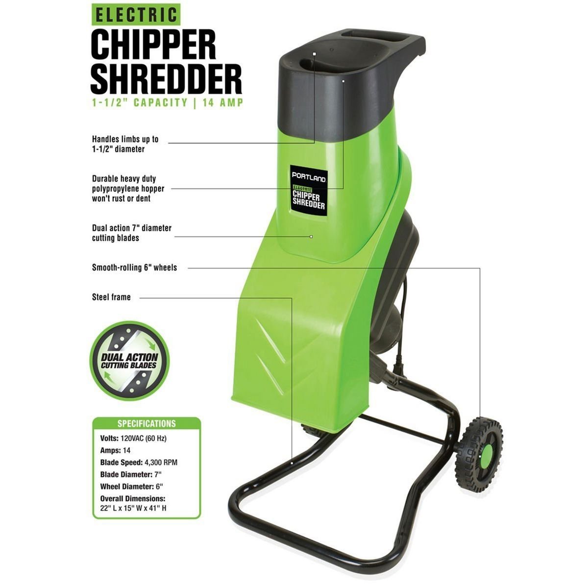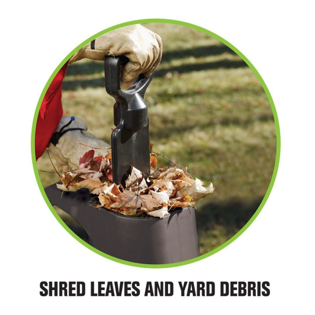 Utilice la cortadora trituradora para su patio o lugar de trabajo para triturar ramas y otros restos. La cortadora trituradora hace que sea fácil de eliminar los restos desmenuzados o se puede utilizar como abono orgánico libre. Las características incluyen un diseño, interruptor de corte de seguridad interna de dos pala y ruedas de suave balanceo.