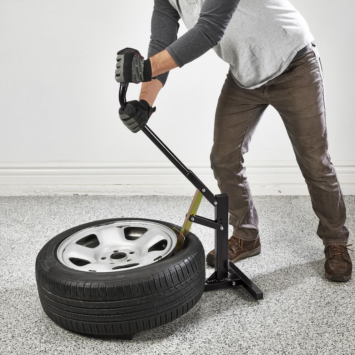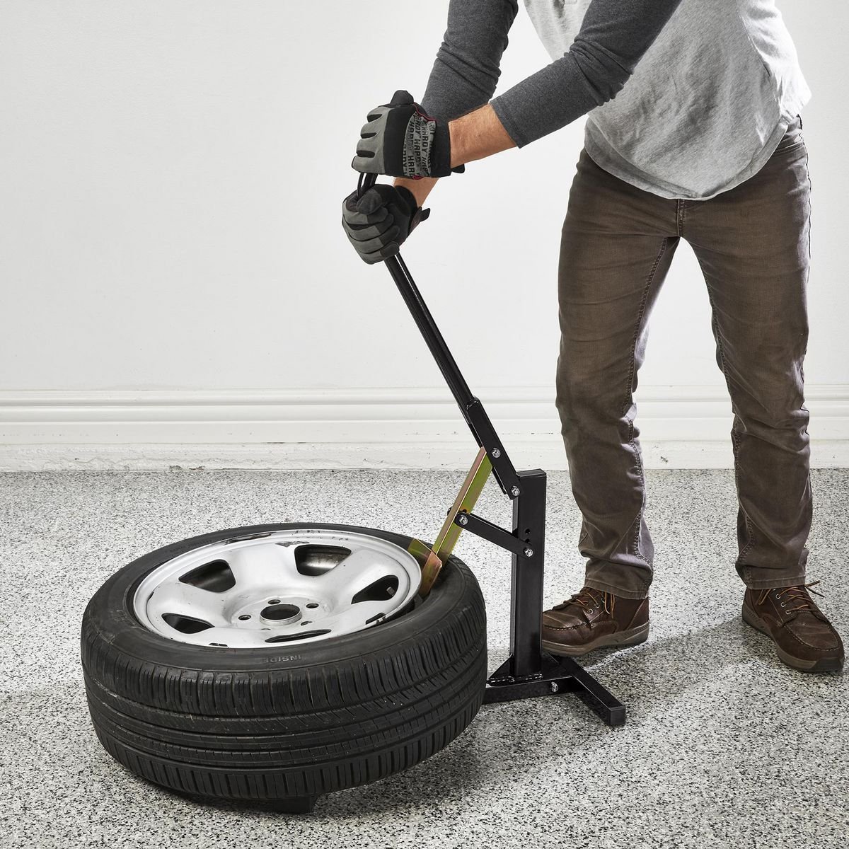 El brazo destalonador extralargo quita los neumáticos sin esfuerzo