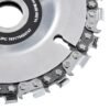 La hoja de motosierra está alojada entre dos discos de acero inoxidable