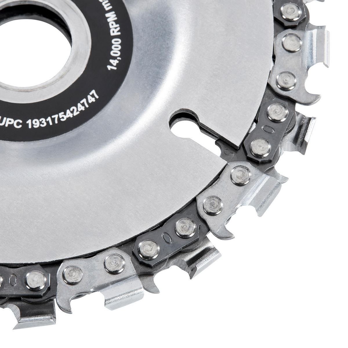 El disco de talla BAUER™ tiene dientes dobles agresivos para una rápida remoción de madera. El disco de talla puede usarse en cualquier dirección para esculpir, canalizar, ahuecar y cortar curvas en madera. Se adapta a la mayoría de las amoladoras angulares de 4 pulgadas y 4-1/2 pulgadas con un vástago de 5/8 pulgadas.