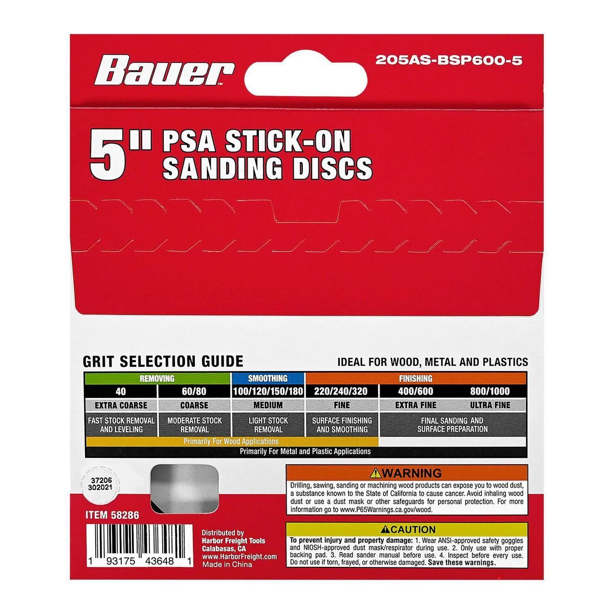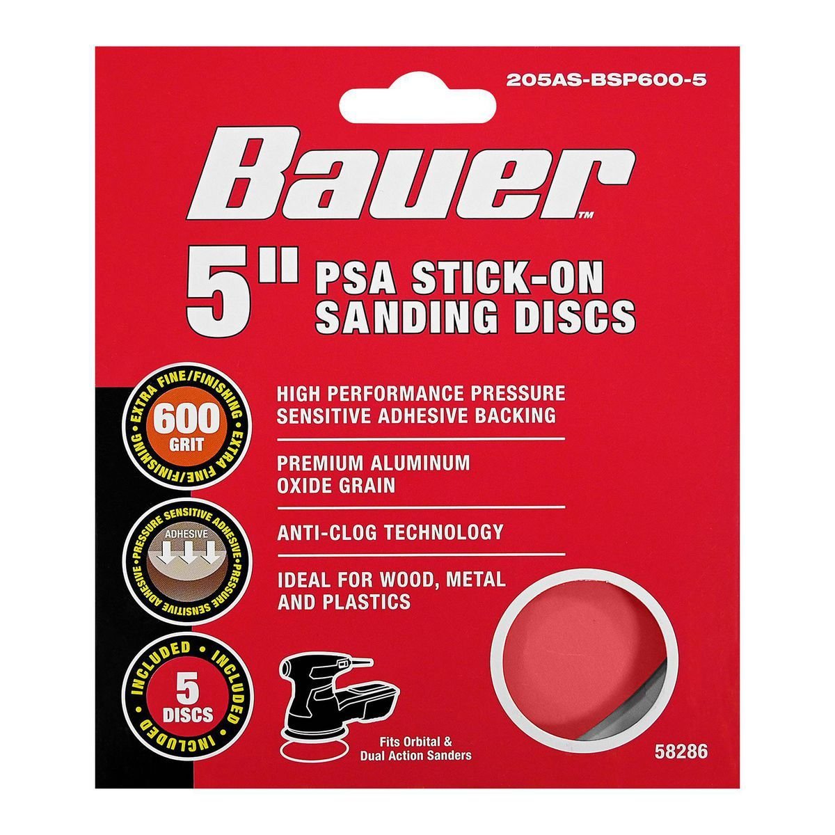 Discos de lija BAUER 5", grano 600, paquete de 5