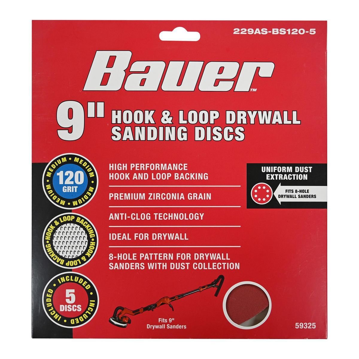 Estos discos de lijado BAUER™ están diseñados para usarse en lijadoras de paneles de yeso de ocho orificios. Construidos con un respaldo de gancho y bucle de alto rendimiento, estos discos resistentes son fáciles de quitar y reemplazar. Grano de zirconia de primera calidad con tecnología antiobstrucción para una larga vida útil del disco.