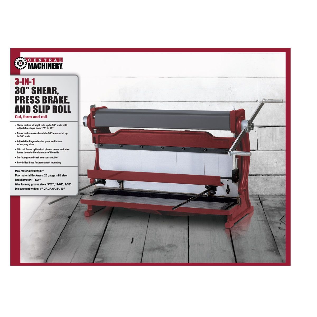 * **Cizalla:** Realiza cortes rectos de hasta 30 pulgadas de ancho.
