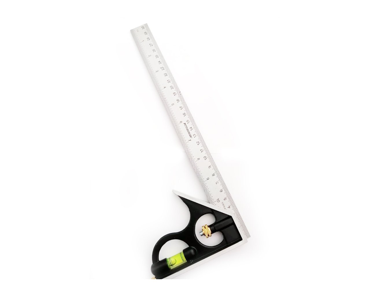 Escuadra de alta resistencia tiene una hoja de acero durable (en unidades métricas y SAE), tornillos de latón y burbuja. Esta herramienta versátil proporciona mediciones y es para uso rudo en el trabajo. Indispensable para cualquier taller o lugar de trabajo.