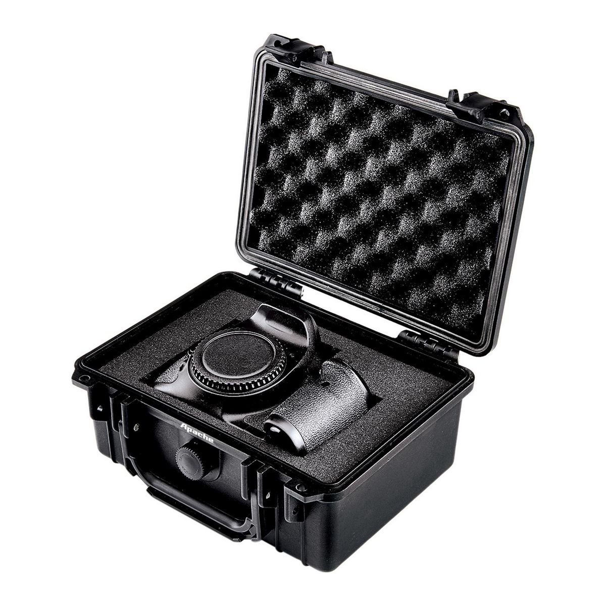 Proteja cámaras, micrófonos, pistolas y otros equipos especializados con este estuche de almacenamiento resistente a la intemperie APACHE® excepcionalmente resistente. Construido con polipropileno extremadamente duradero, este estuche rígido de calidad profesional resiste todo y al mismo tiempo protege el contenido de impactos, humedad y polvo microscópico. La válvula de purga incorporada iguala la presión para que pueda abrir la caja después de cambiar las elevaciones.