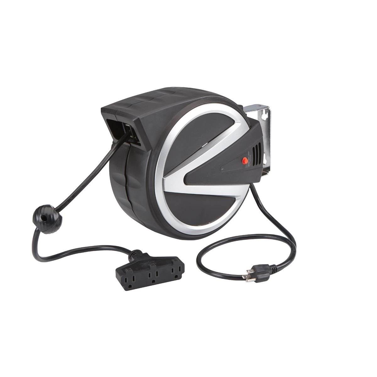 Monte o instale este carrete en su pared o techo para eliminar los riesgos de tropiezos y el desorden en el garaje o en el piso del taller.