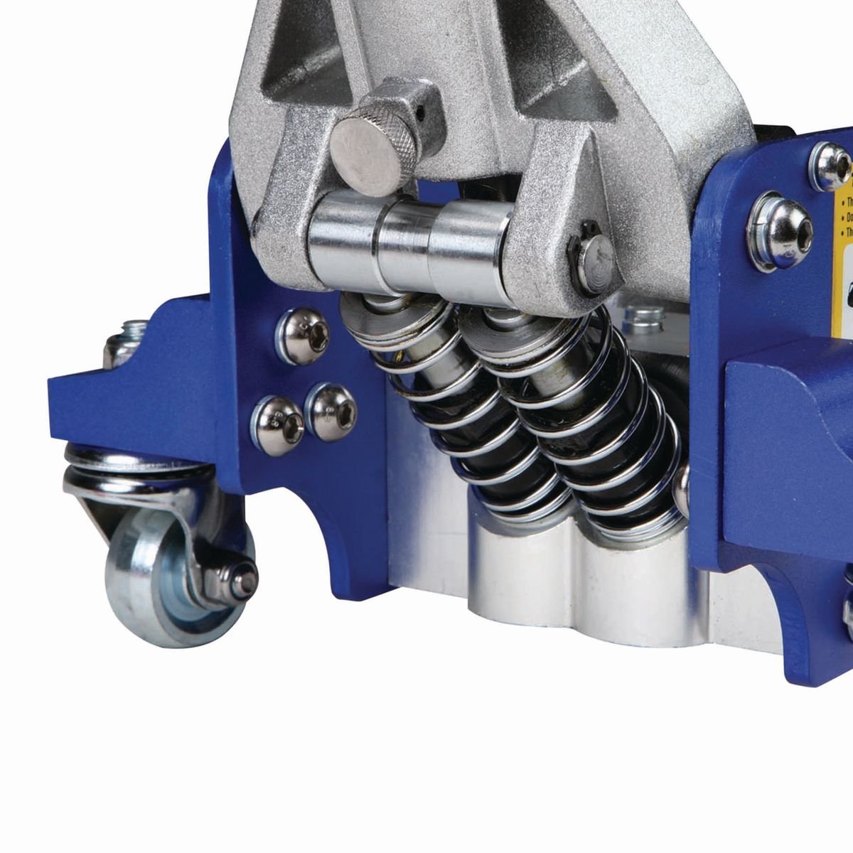 El gato hidráulico de alto rendimiento RAPID PUMP® de aluminio para competencias cuenta con un sistema de bomba paralela doble que levanta la mayoría de las cargas de trabajo en solo 3-1/2 bombeos. Construido con un billet de aluminio aeronáutico de alta resistencia y bajo peso, este gato de carreras tiene un mecanismo de liberación con junta universal para descensos controlados de la carga desde cualquier posición del mango. ¡El gato de carreras necesita solo 1/2 vuelta para una liberación ultrarrápida durante los pit stops!