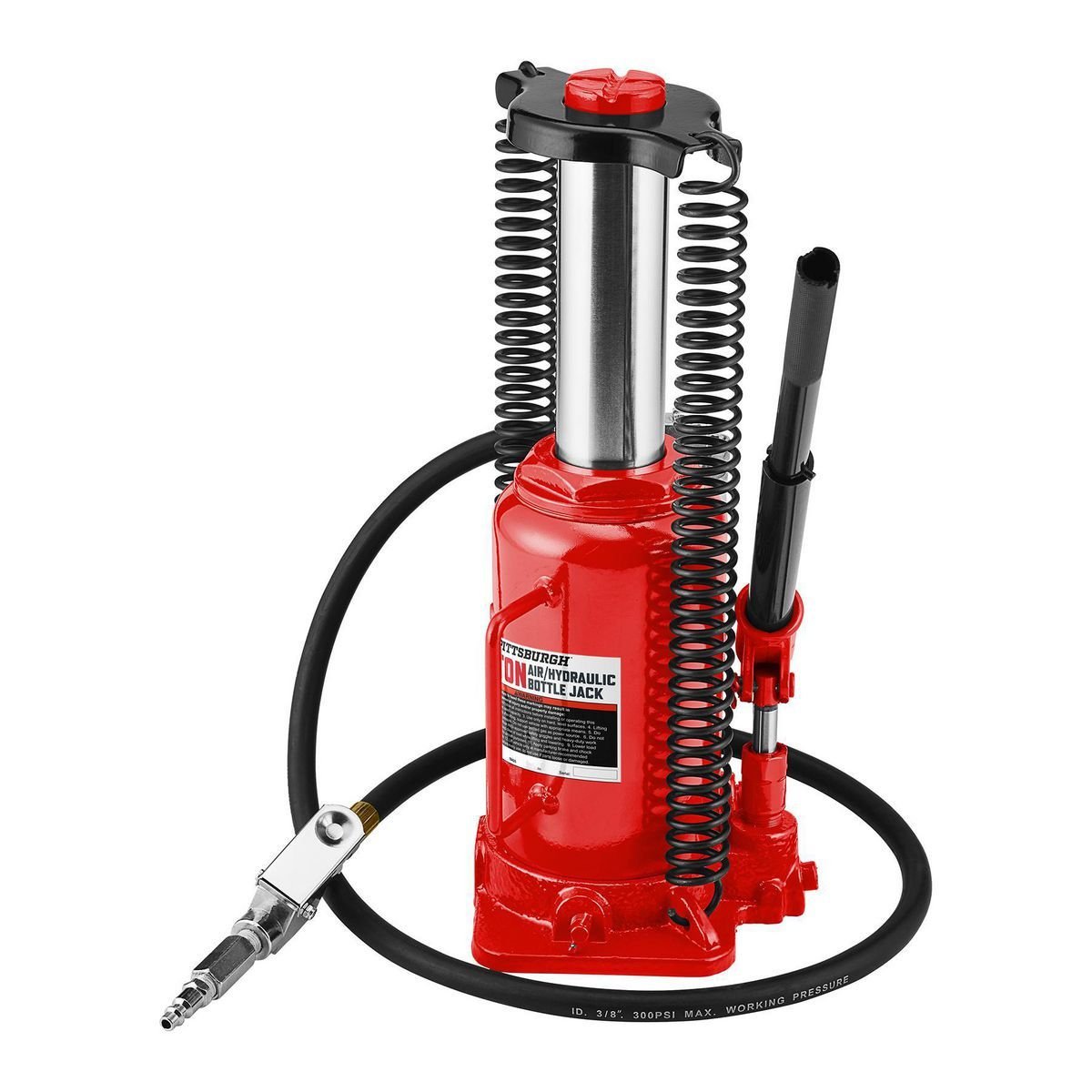 Levante carretillas, vehículos agrícolas y más con este gato hidroneumatico e industrial levanta hasta 40,000 lb con poco esfuerzo. La manguera de aire de 48 pulgadas de largo brinda la opción de alimentar este gato hidráulico con aire.