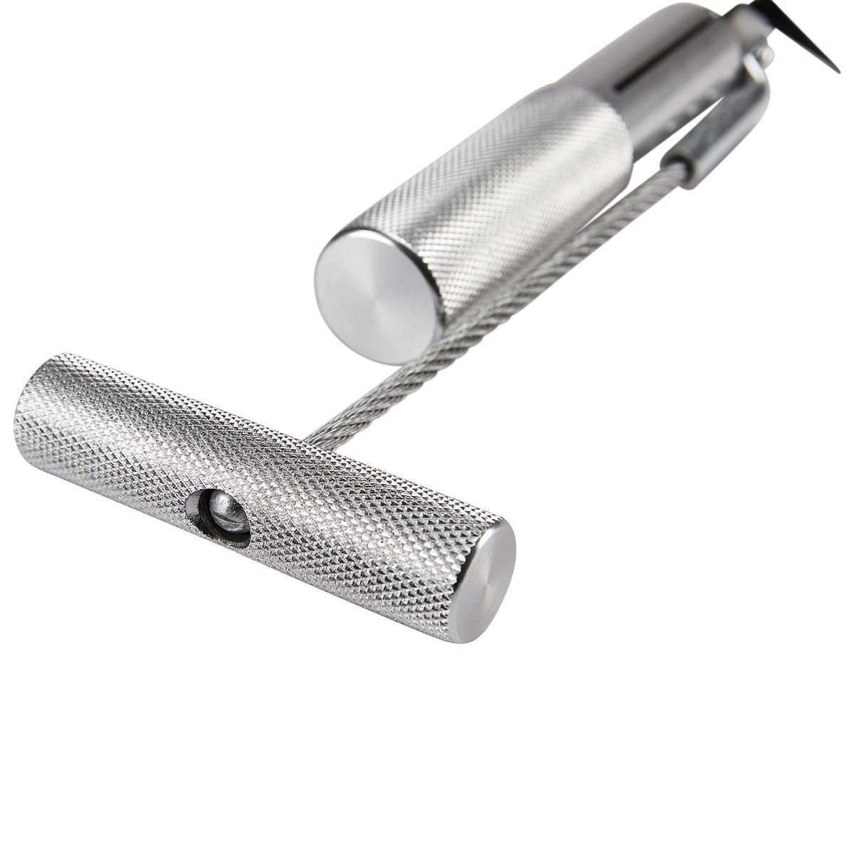 La herramienta de extracción de parabrisas LAGUNA™ tiene un diseño especializado que facilita la extracción de los sellos del parabrisas. El mango de tracción proporciona la cantidad adecuada de palanca para guiar la hoja templada de servicio pesado a través de sellos de goma resistentes y secos.