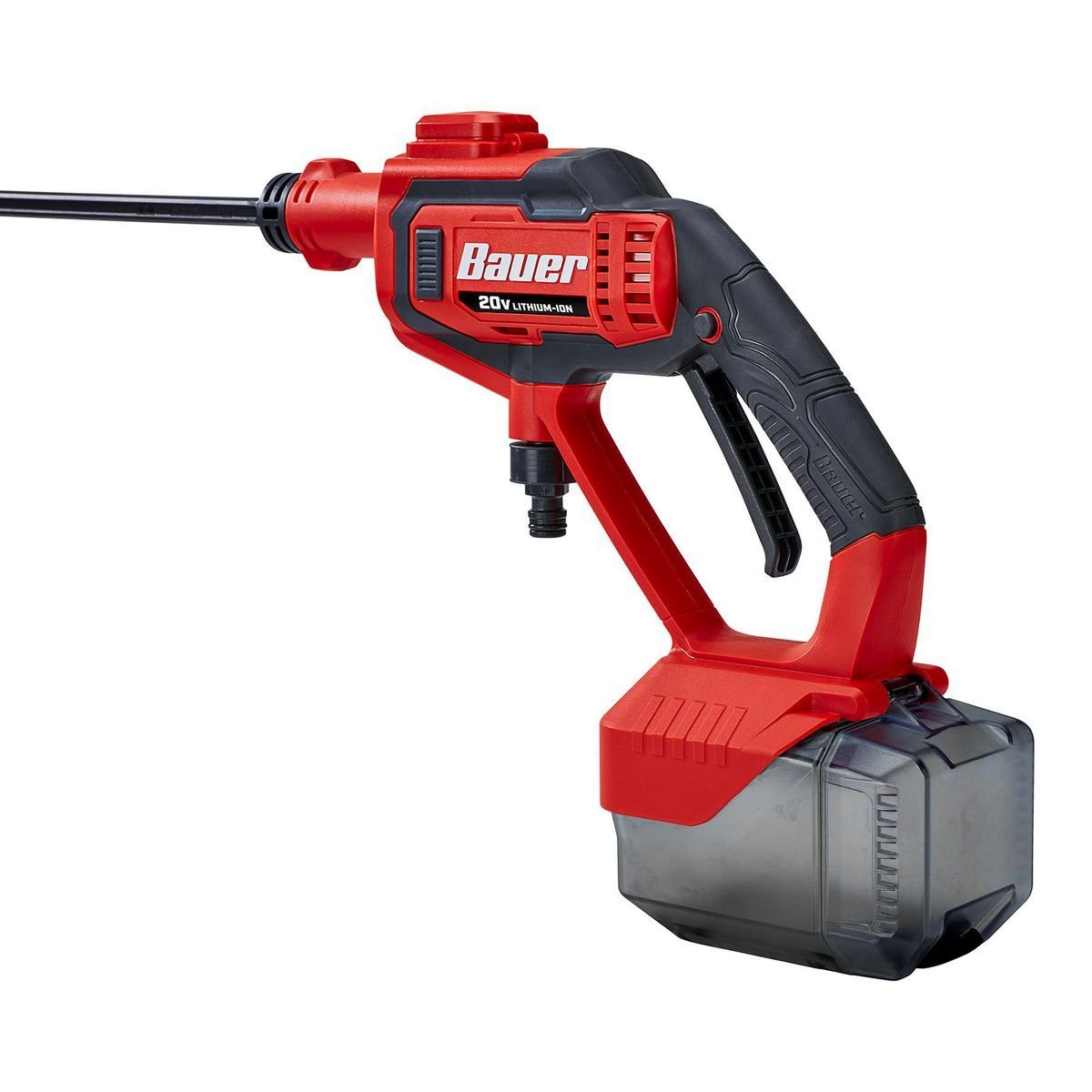 Limpia en cualquier lugar con el Limpiador Portátil a Batería BAUER™ 20V. Con la manguera de sifón incluida, el adaptador para botella de 2 litros y el adaptador para manguera de jardín, puedes extraer agua de cualquier fuente de agua dulce o llevarla contigo. Realiza el trabajo sin estar atado a un enchufe de corriente o un grifo de agua. Con una presión de hasta 320 PSI, este limpiador es ideal para lavar bicicletas, botes, muebles de patio y más.