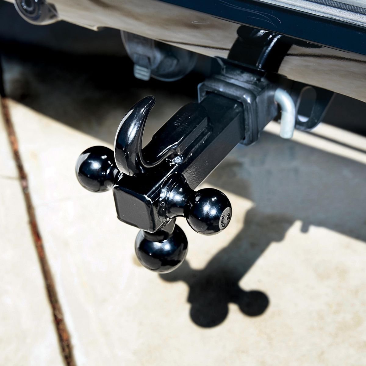 Incluye Soportes de bola triple para adaptarse a casi cualquier acoplador de enganche, además agrega un práctico gancho de tracción incorporado.
