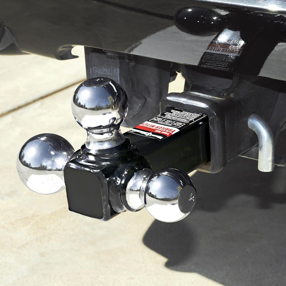 Este soporte de enganche de remolque de triple bola se adapta a tres tamaños de acoplador diferentes para que siempre tenga el soporte de bola del tamaño correcto.