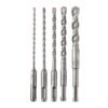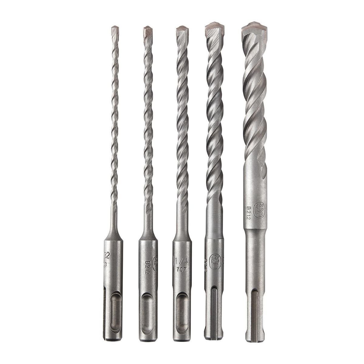 Estas brocas tienen un diseño especial que las mantiene seguras en el martillo. Las puntas están hechas de un material muy duro que puede romper fácilmente materiales como concreto, azulejos y ladrillos. Las ranuras en las brocas están diseñadas para eliminar el polvo rápidamente, lo que ayuda a que la broca taladre más rápido.