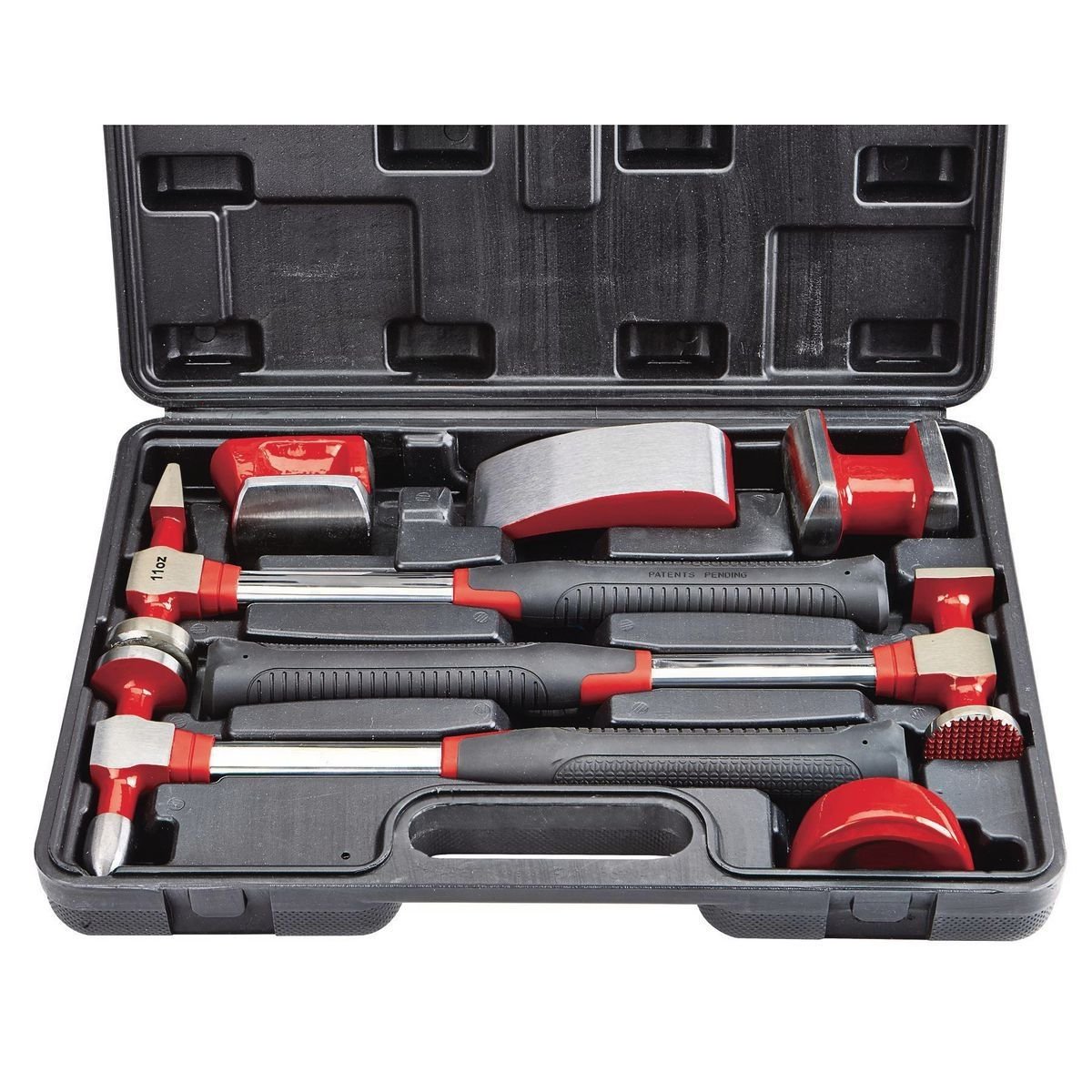 Utilice este conjunto de martillos, para eliminar golpes, abolladuras y aplanar los paneles de metal, crear curvas exteriores y reducir el tamaño del metal.