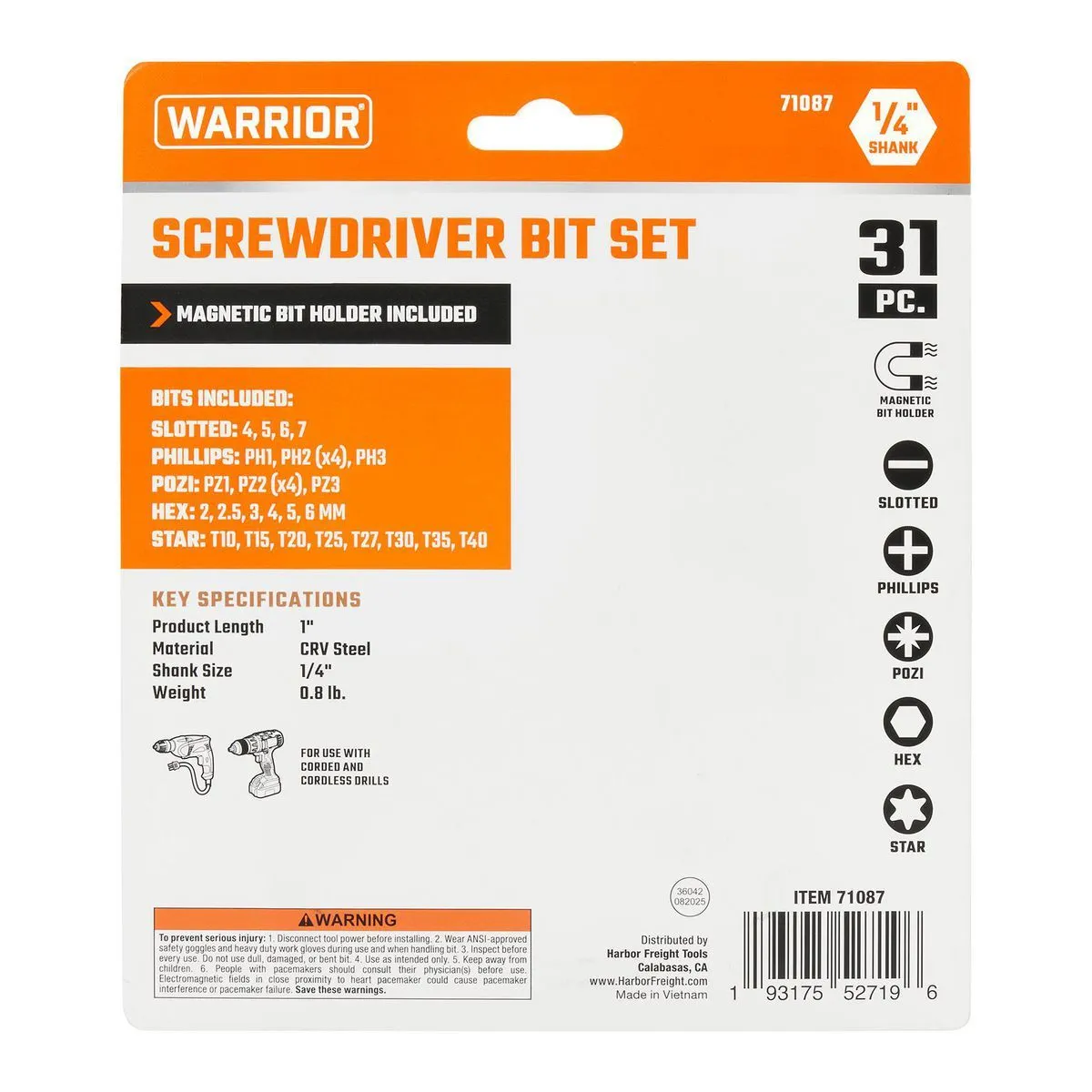 Este práctico juego de puntas para destornillador WARRIOR® incluye los tamaños de punta más comunes, lo que los hace ideales para usar con taladros con cable e inalámbricos.