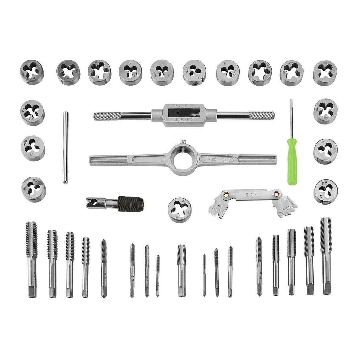 Juego de rosca y tarrajas SAE de acero al carbono, 40 piezas