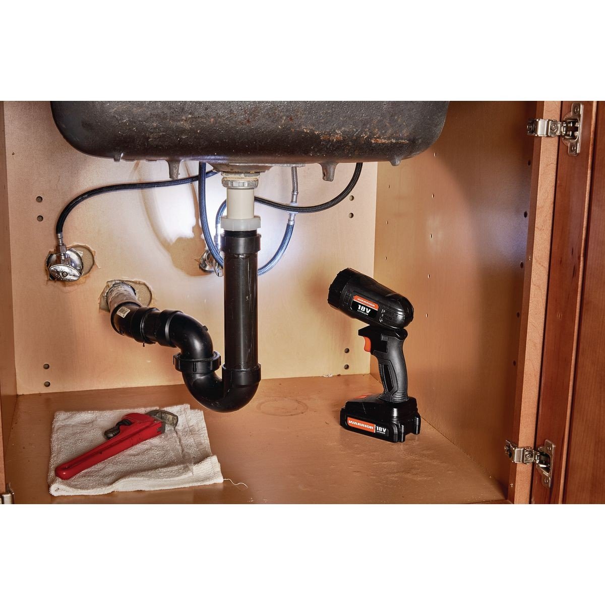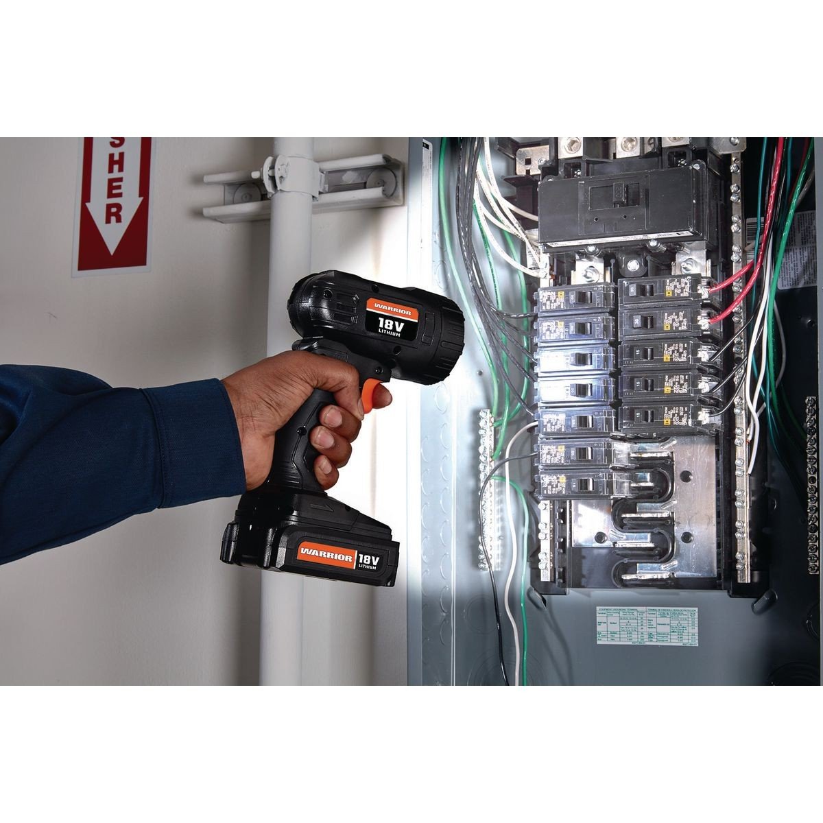 La batería es intercambiable con otras herramientas de 18 voltios Warrior®