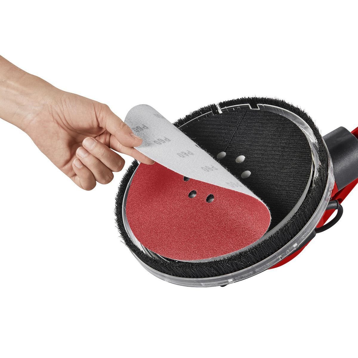 El anillo de cepillo de nailon se desliza suavemente sobre la superficie de trabajo para mantener el polvo al mínimo.