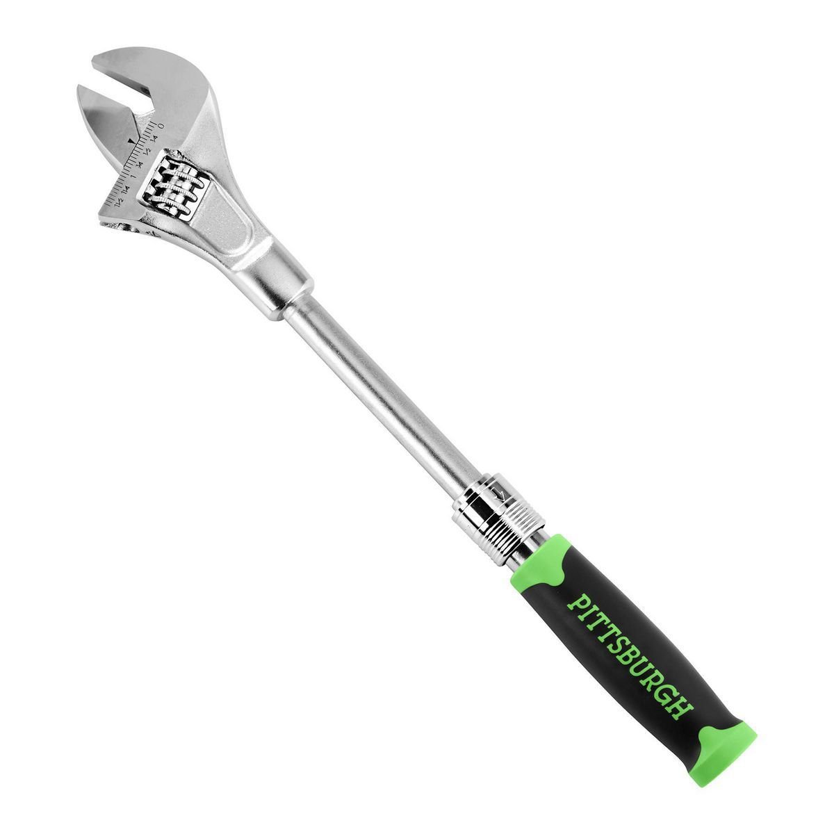 Esta Llave Ajustable Extensible de PITTSBURGH® tiene un mango con 5 posiciones de bloqueo desde 12 pulgadas hasta 16 pulgadas para aumentar la palanca. La extensión cuenta con un mecanismo de bloqueo seguro para evitar que el mango se deslice.