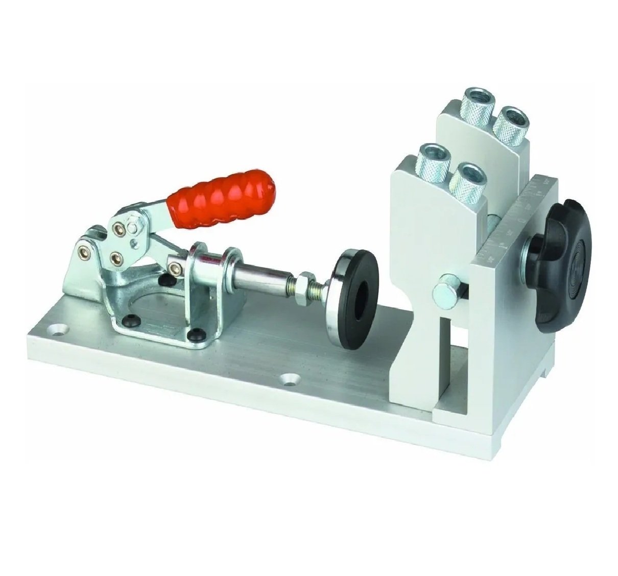 Incluye :bloques de perforación y plantilla de guía, base de L, 3/8 "bits paso con el collar de profundidad, 100 tornillos autorroscantes y llaves hexagonales.