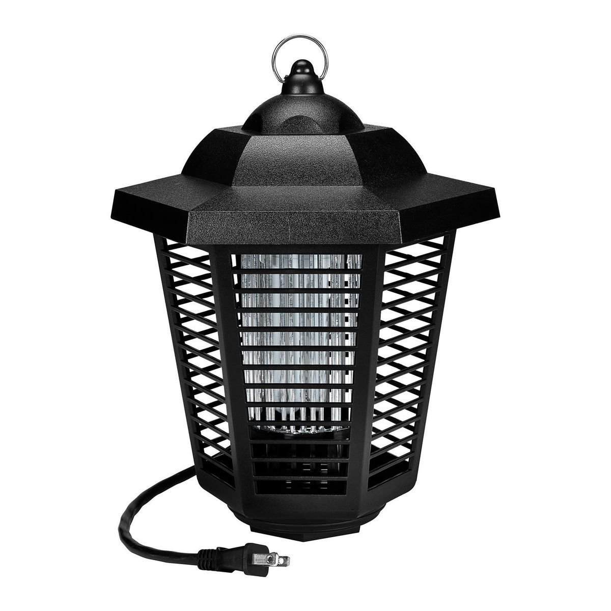 Este exterminador de insectos utiliza una potente luz ultravioleta (UV) blanca para atraer a los insectos voladores, como mosquitos, moscas, avispas y polillas. La luz UV imita la luz de la luna, que es a lo que los insectos se sienten naturalmente atraídos. Una vez que los insectos se acercan a la luz, reciben una descarga eléctrica que los mata.