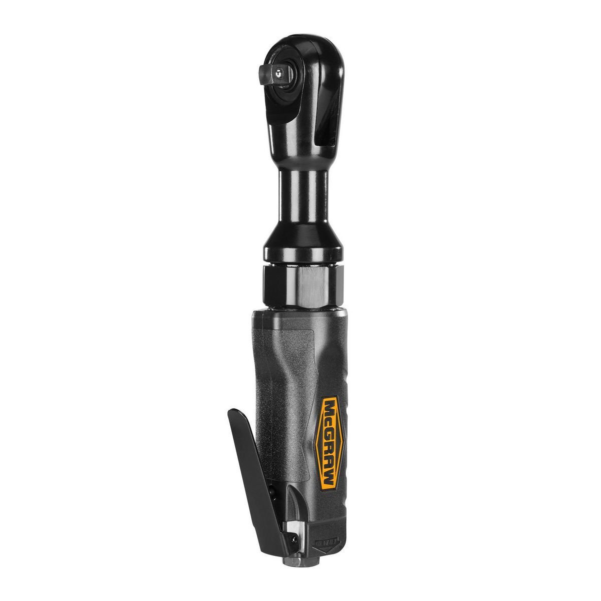 La matraca neumática de aire de aluminio MCGRAW™ de 3/8 in. tiene un perfil delgado que le permite alcanzar los sujetadores donde las llaves de impacto no pueden llegar. Este rache liviano funciona con energía neumática o puede utilizarse manualmente para un control preciso. La herramienta cuenta con un mango ergonómico de goma para mayor comodidad. El conveniente interruptor de avance/reversa facilita la extracción o sustitución de sujetadores sin necesidad de pausar para ajustar la herramienta.