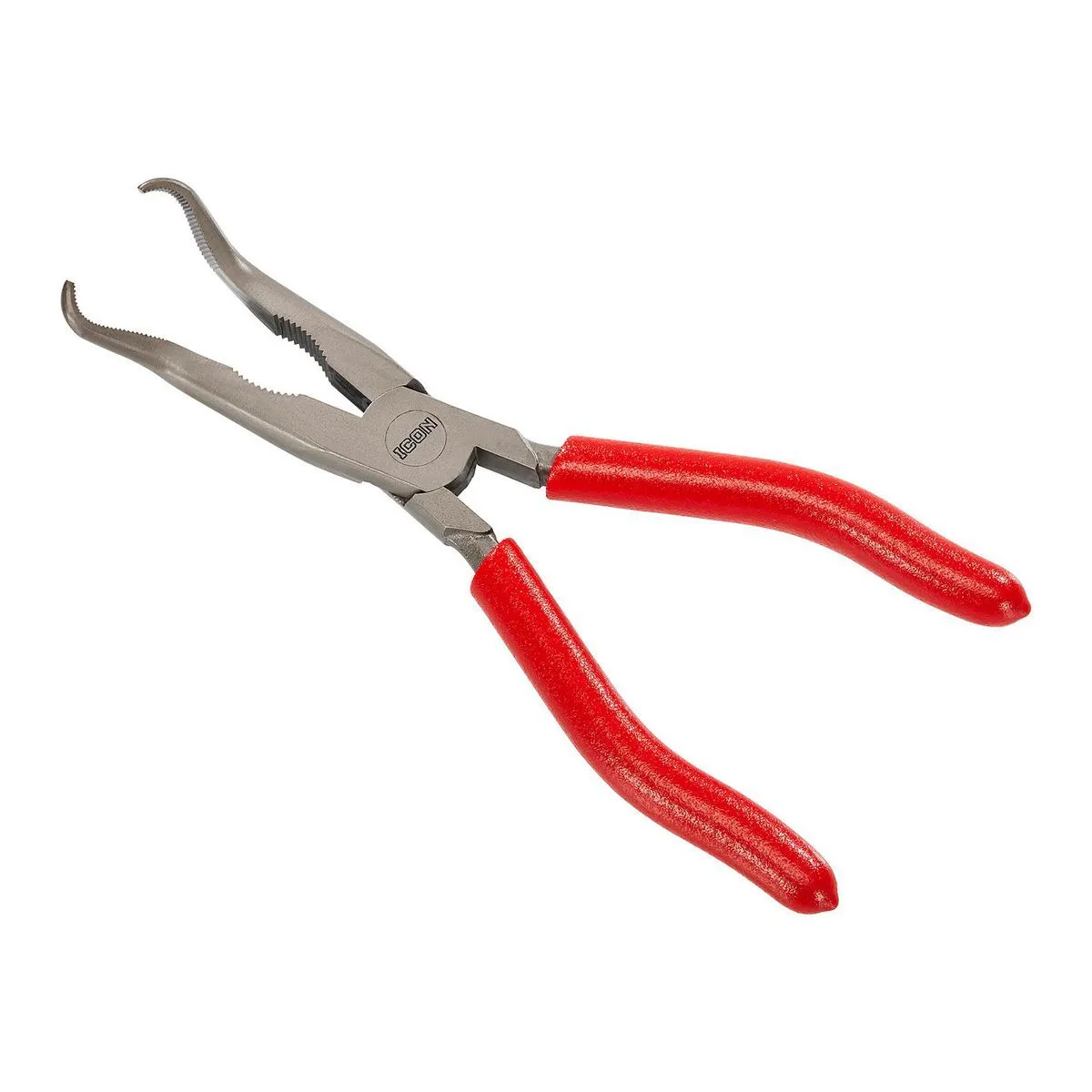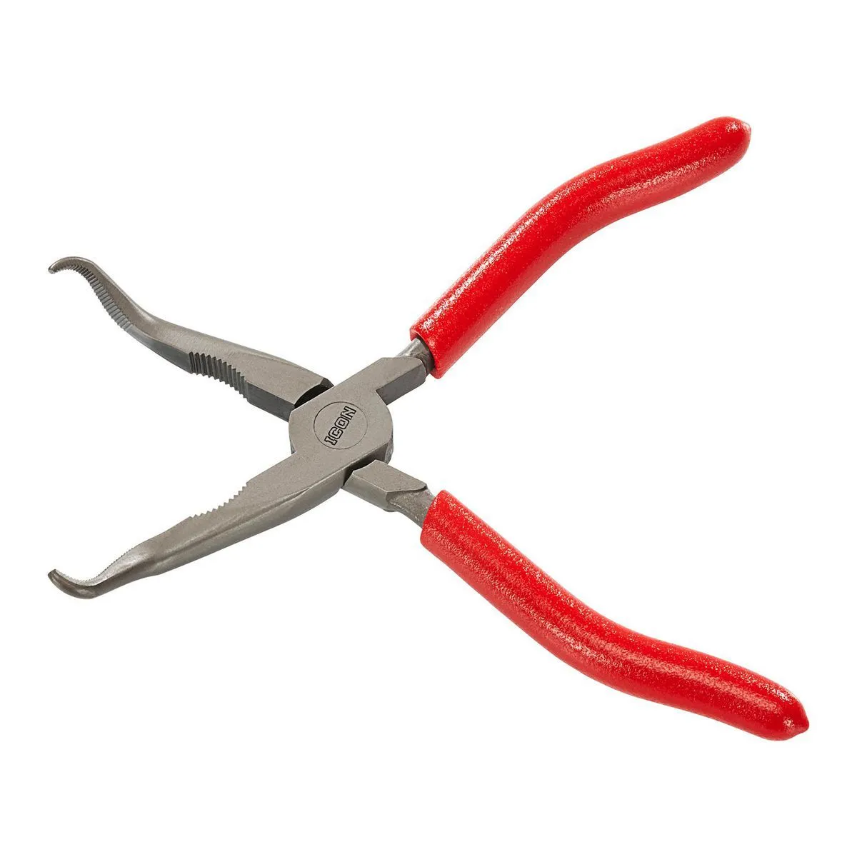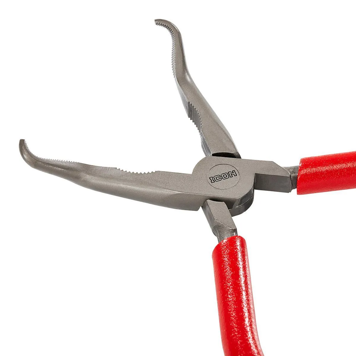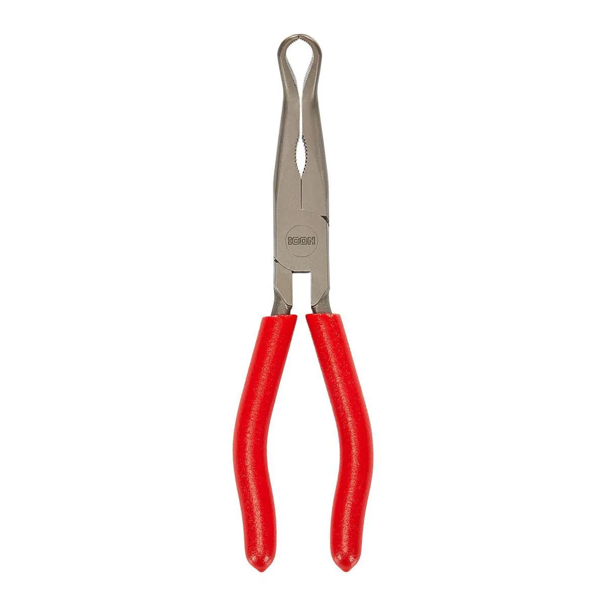Las pinzas ICON de 8 pulgadas están diseñadas para sujetar, instalar y retirar mangueras de manera sencilla. Su mandíbula rodea la manguera aplicando presión uniforme, mientras que la punta en ángulo de 40 grados facilita el acceso en espacios reducidos. Fabricadas en acero cromo-molibdeno con acabado pulido, garantizan alta resistencia y durabilidad.
