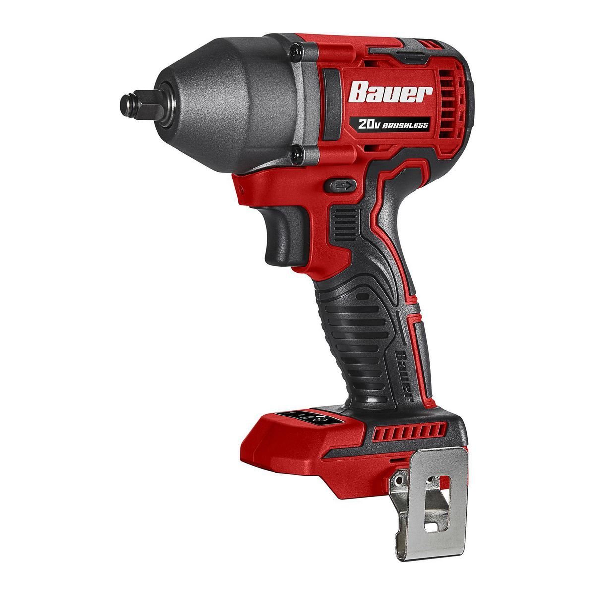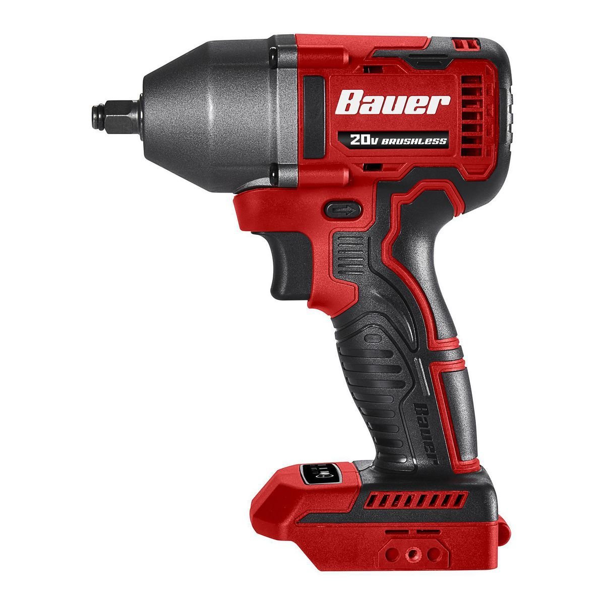 La pistola de impacto de 3 velocidades inalámbrica sin escobillas de 3/8 pulg. de BAUER™ está diseñada para brindar versatilidad y acceso en espacios reducidos. El motor de alto rendimiento produce 450 ft. lbs. de par de arranque del perno para quitar tuercas y pernos de cabeza con facilidad. Esta llave de impacto funciona con el sistema de batería de litio BAUER™ para una carga rápida y un tiempo de funcionamiento más prolongado.
