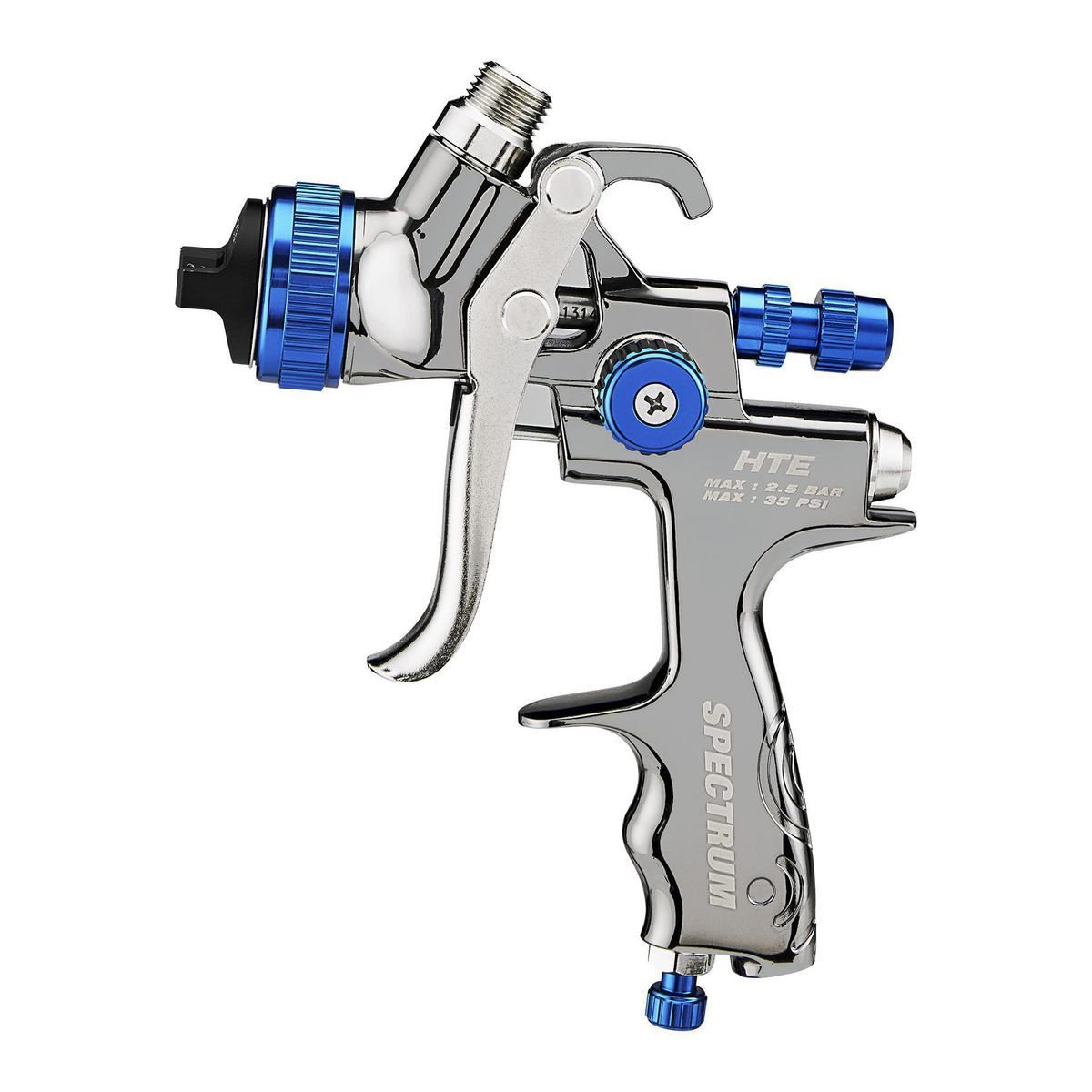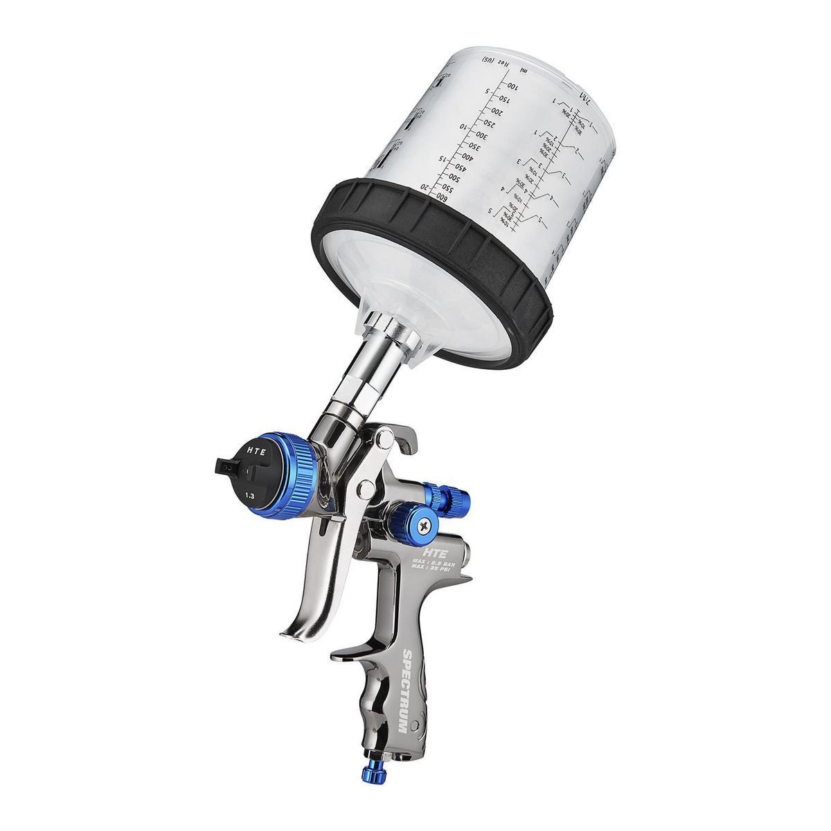 La Pistola de Pulverización de Alimentación por Gravedad SPECTRUM™ Premium HTE con Control Lateral de Abanico es ideal para trabajos exigentes como la aplicación de capa transparente. La atomización de alta eficiencia utiliza menos volumen de aire para lograr una mayor cobertura, lo que es beneficioso para el medio ambiente y ahorra dinero en costos de material. Utilice esta pistola de pulverización HTE para obtener los mejores resultados en trabajos exigentes como acabados automotrices.