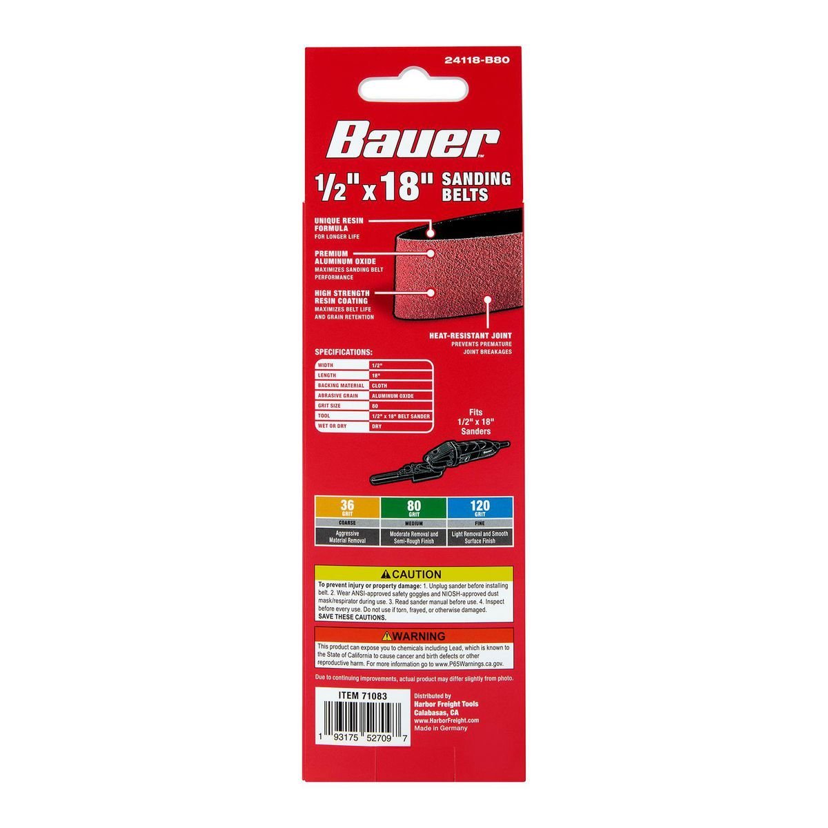 Estas lijas de repuesto BAUER™ están fabricadas con grano de Óxido de Aluminio de alta calidad para un rendimiento máximo de las bandas de lijado. Úselos con lijadoras de banda de 1/2 pulg. x 18 pulg.