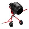 Mezcladora eléctrica resistente con tambor de 4 pies cúbicos, ideal para concreto, estuco o mortero. Capaz de mezclar hasta 72 kg. Fácil de mover gracias a sus ruedas grandes y diseño equilibrado.