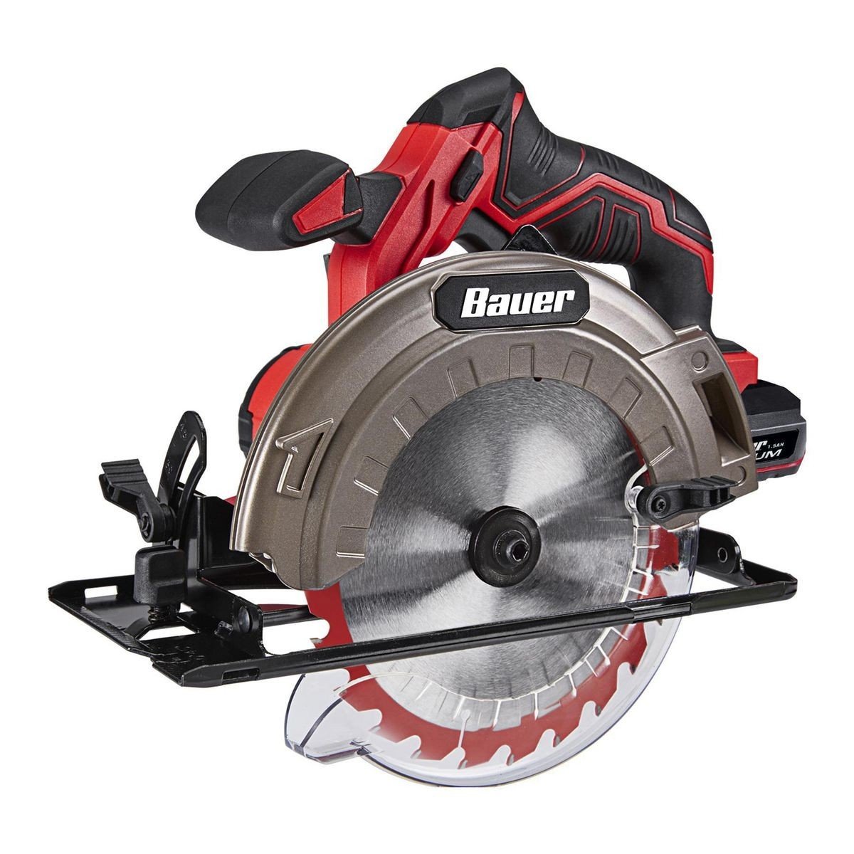Esta poderosa sierra circular sin cable Bauer brinda potencia de corte sin procesar con un diseño de mango de doble agarre para control y precisión.