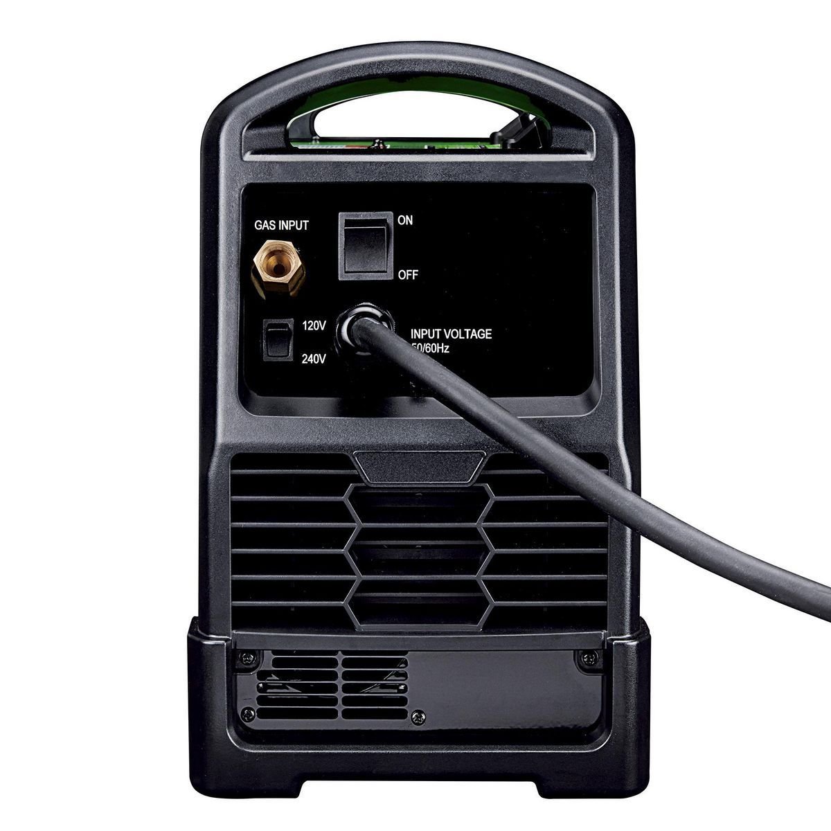 Capacidad de soldadura: 120V: Acero: 24 GA - 1/8 pulgadas, Aluminio: 22 GA - 1/8 pulgadas 240V: Acero: 24 GA - 3/8 pulgadas, Aluminio: 22 GA - 3/8 pulgadas.