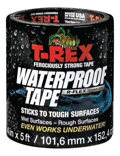 Esta cinta impermeable es "ferozmente fuerte" para estirarse hasta un 700% de su longitud en condiciones extremas. Use cinta impermeable T-Rex® para reparaciones de uso general en condiciones difíciles. El ancho de 4 pulgadas cubre grandes áreas.