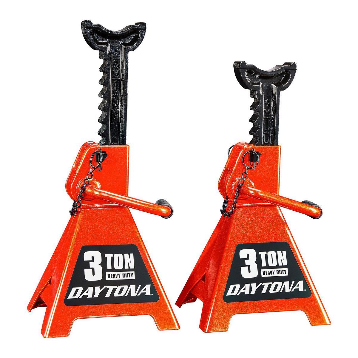 Estos soportes de gato cuentan con un sistema de trinquete fácil de usar para ajustes rápidos de altura.